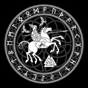Het Valknut is een krachtig symbool dat de overgang tussen leven en dood symboliseert. Het wordt vaak geassocieerd met Odin en wordt gekozen door mensen die zich verbonden voelen met de spirituele aspecten van de Noorse mythologie.Fenrir (De Wolf van Ragnarok)
